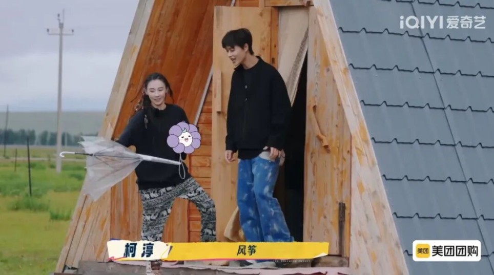 认真负责的领队张柏芝有她俏皮鬼马的一面,雨天给大家准备的伞被风吹得凌乱,她和柯淳说这是风筝,把抽象男孩也搞得一愣一愣。